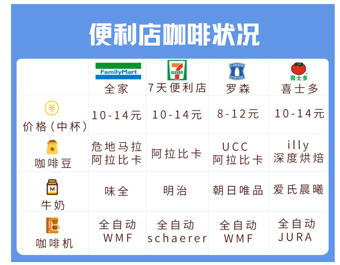 目前,便利店咖啡主要以全家、7 eleven、罗森、便利蜂为主要业态。