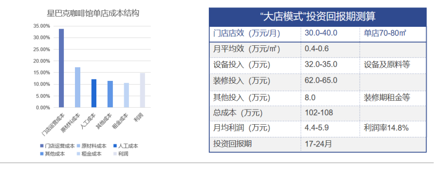 设备+装修一般是40-50万,由于商业地产签小店模式最长签到2年合约,所以一般12个月内就要收回投资,否则公司不会选择开。
