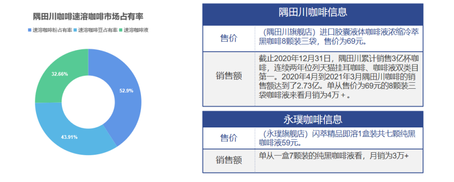 线上品牌中,除了传统老牌雀巢以外,在新消费浪潮下,也诞生了三顿半、永璞咖啡、隅田川等新锐品牌。