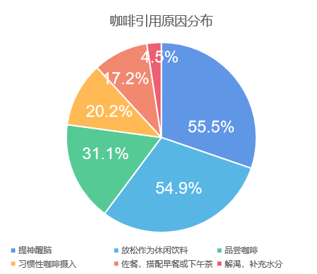 相对而言,消费者对咖啡消费的营养性较弱,出于健康需求而喝咖啡的相对比例较低。